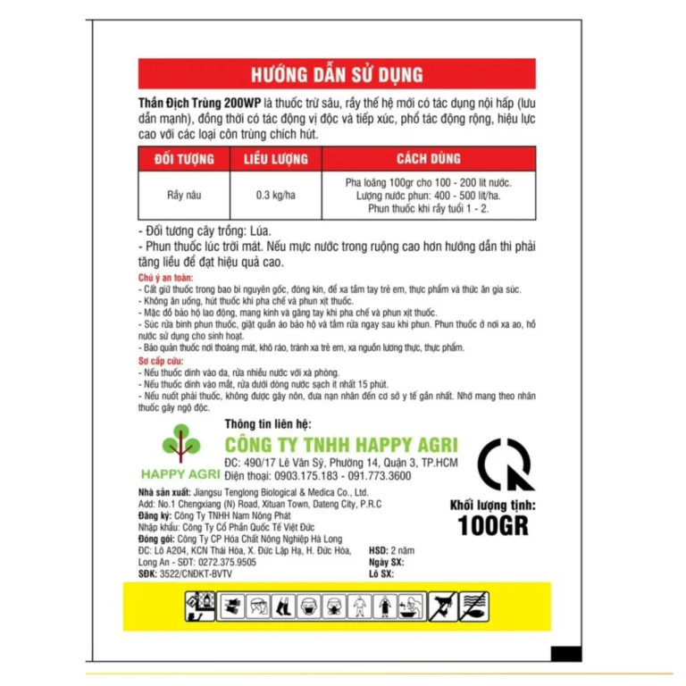 Thần địch trùng 200WP là thuốc trừ sâu, rầy thế hệ mới có tác dụng nội hấp (lưu dẫn mạnh), đồng thời có tác động vị độc và tiếp xúc, phổ tác động rộng, hiệu lực cao với các loại côn trùng chích hút.