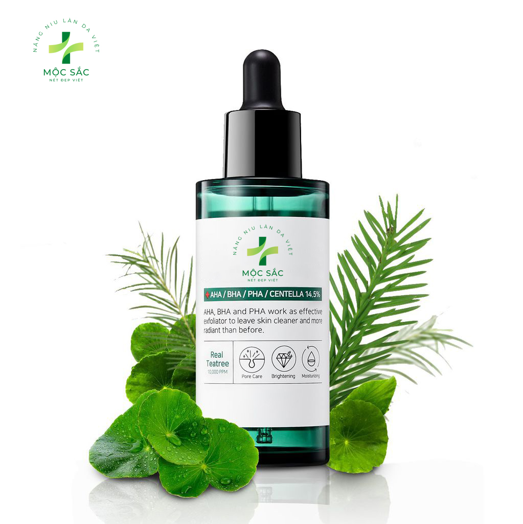 Tinh chất Serum trị mụn Mộc Sắc 30 ngày là tinh chất thuộc dòng AHA-BHA-PHA của thương hiệu Mộc Sắc , Sản phẩm được chiết xuất từ rau má, tràm trà giúp kháng viêm, giảm mụn, tái tạo da nhanh chóng mà không gây kích ứng. Hỗ trợ làm dịu da, tăng cường sức mạnh cho “hàng rào” bảo vệ da, làm lành vết thương trên da hiệu quả. Đồng thời giúp loại bỏ tế bào chết, bụi bẩn, mụn đầu đen và đầu trắng.