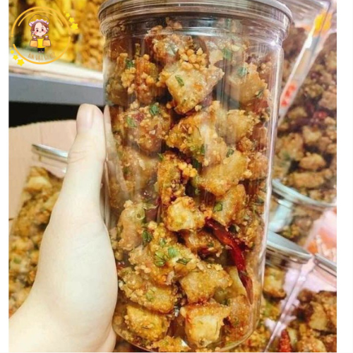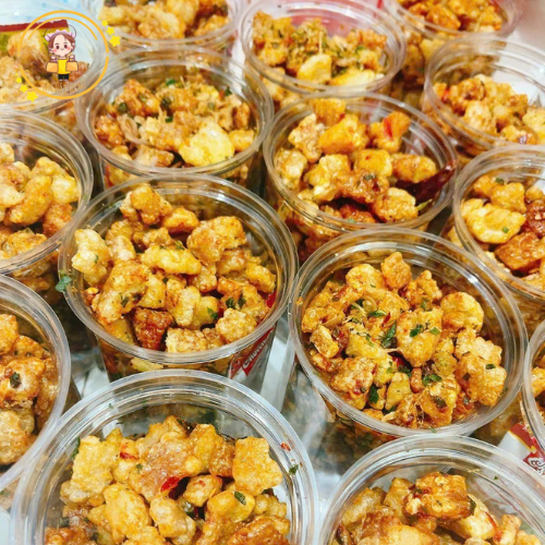 Tóp mỡ mắm hành của Ăn vặt genZ được chế biến từ mỡ heo tươi, được chế biến và tạo thành từng miếng nhỏ. Kết hợp với các nguyên liệu như ớt, tỏi, mắm, hành mang đến sự cay nồng nhè nhẹ. Tóp mỡ thường có màu vàng óng, mắm hành tạo nên hương vị độc đáo và dây mùi. Món này có hương thơm mặn mà từ mắm hành, và độ ngon ngọt từ tóp mỡ.