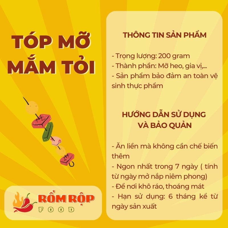 Món tóp mỡ mắm tỏi là một món ăn truyền thống ngon miệng trong ẩm thực Việt Nam. Tóp mỡ, một loại thực phẩm làm từ mỡ heo, được chế biến với mắm tỏi tạo nên hương vị đặc trưng và thơm ngon. Quá trình nấu nước mắm tỏi thường kết hợp nước mắm, tỏi băm nhỏ, đường và gia vị khác. Món ăn này thường ăn kèm với cơm nóng, tạo ra sự hòa quyện giữa hương vị mặn của mắm và hương thơm của tỏi, tạo nên một bữa ăn ngon miệng và hấp dẫn.