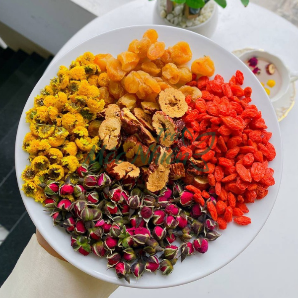 🍃 THÔNG TIN SẢN PHẨM 🍃: Tên sản phẩm: Trà detox mộc nhiên dưỡng nhan ngũ vị Thành phần: Hoa Hồng, Hoa cúc vàng, Táo Đỏ, Kỷ Tử, Long Nhãn Quy cách đóng gói: Đóng theo gói Trọng lượng: 10g/mỗi gói NSX: In trên bao bì Hạn sử dụng: 12 tháng Hướng dẫn bảo quản: Nơi khô ráo, thoáng mát. Tránh ánh nắng mặt trời chiếu trực tiếp.