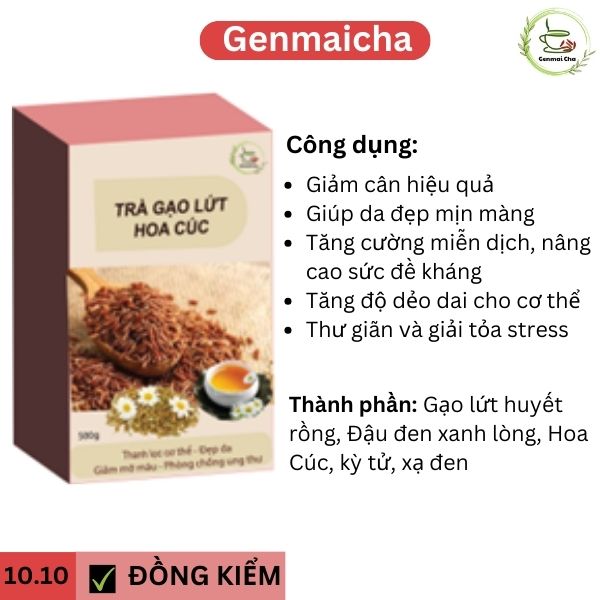 Trà gạo lứt hoa cúc tăng cường hệ miễn dịch, sức đề kháng của cơ thể, ngừa cảm lạnh. – Trà gạo lứt hoa cúc hỗ trợ ngăn ngừa huyết áp cao, tiểu đường, máu nhiễm mỡ, thấp khớp, gout… – Đặc biệt, trà gạo lứt hoa cúc TUNA hỗ trợ giảm cân an toàn, thon gọn vóc dáng. Vì vậy, rất tốt cho mẹ bầu và mẹ sau sinh.