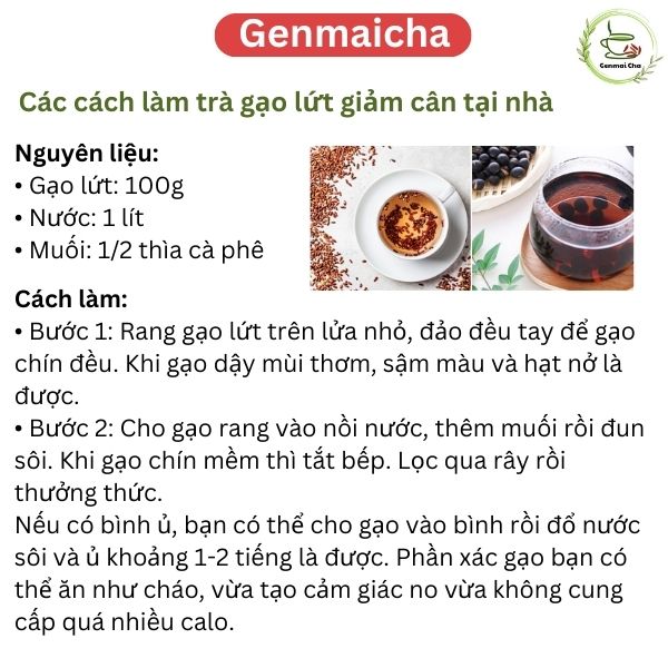 Trà gạo lứt là một loại trà được làm từ lá gạo lứt, không chỉ có vị thơm ngon mà còn mang lại nhiều lợi ích cho sức khỏe. Trà gạo lứt chứa nhiều chất chống oxy hóa và chất chống vi khuẩn, giúp tăng cường hệ miễn dịch và bảo vệ cơ thể khỏi các bệnh tật. Ngoài ra, nó còn giúp điều chỉnh huyết áp, làm giảm mỡ máu và hỗ trợ quá trình tiêu hóa.Giúp giảm cân