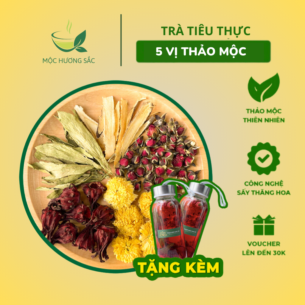 TRÀ TIÊU THỰC 5 VỊ THẢO MỘC (Mua hộp 30 gói Tặng Kèm Chai Thủy Tinh