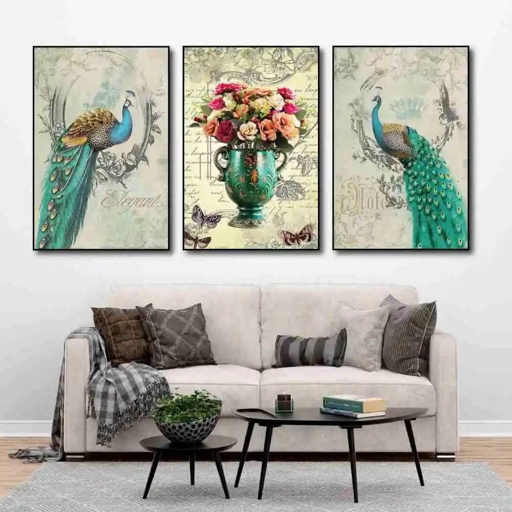 TÊN SẢN PHẨM: Tranh chim công và bình hoa.