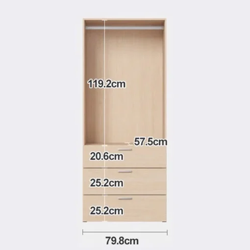 Tủ Quần Áo MANDY CLOSET 02 Natural - Kích Thước 80 x 62 x 194 cm, Chất Liệu Gỗ MFC Melamine Tự Nhiên - Xuất Xứ Việt Nam