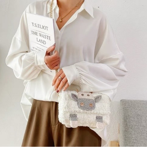 Nếu bạn đang cần tìm một chiếc túi mộc mạc, chan hòa với thiên nhiên thì đích thị là em nó. Với thiết kế thêu dệt bởi các sợi len bông cho ta cảm giác mộc mạc, thân thiện. Điểm nhấn của chiếc túi là bé cừu dễ thương, bắt mắt tăng thêm vẻ đẹp nữ tính, trẻ trung của người dùng. Dây túi được làm từ len bông mềm mịn lại càng tăng lên vẻ đẹp mộc mạc của nó, túi có dây rút để siết lại bảo đảm các đồ vật trong túi được giữ an toàn.