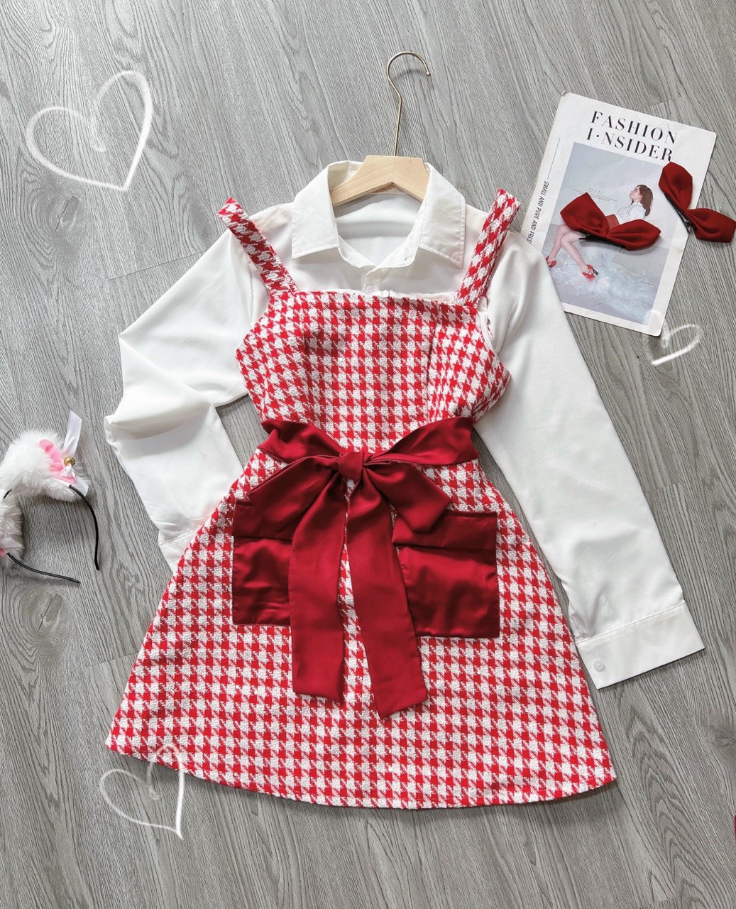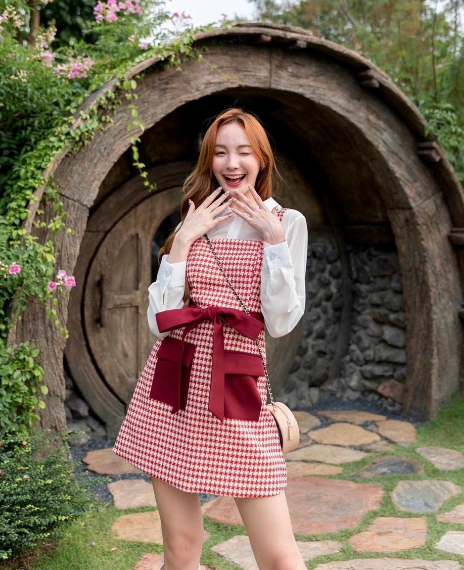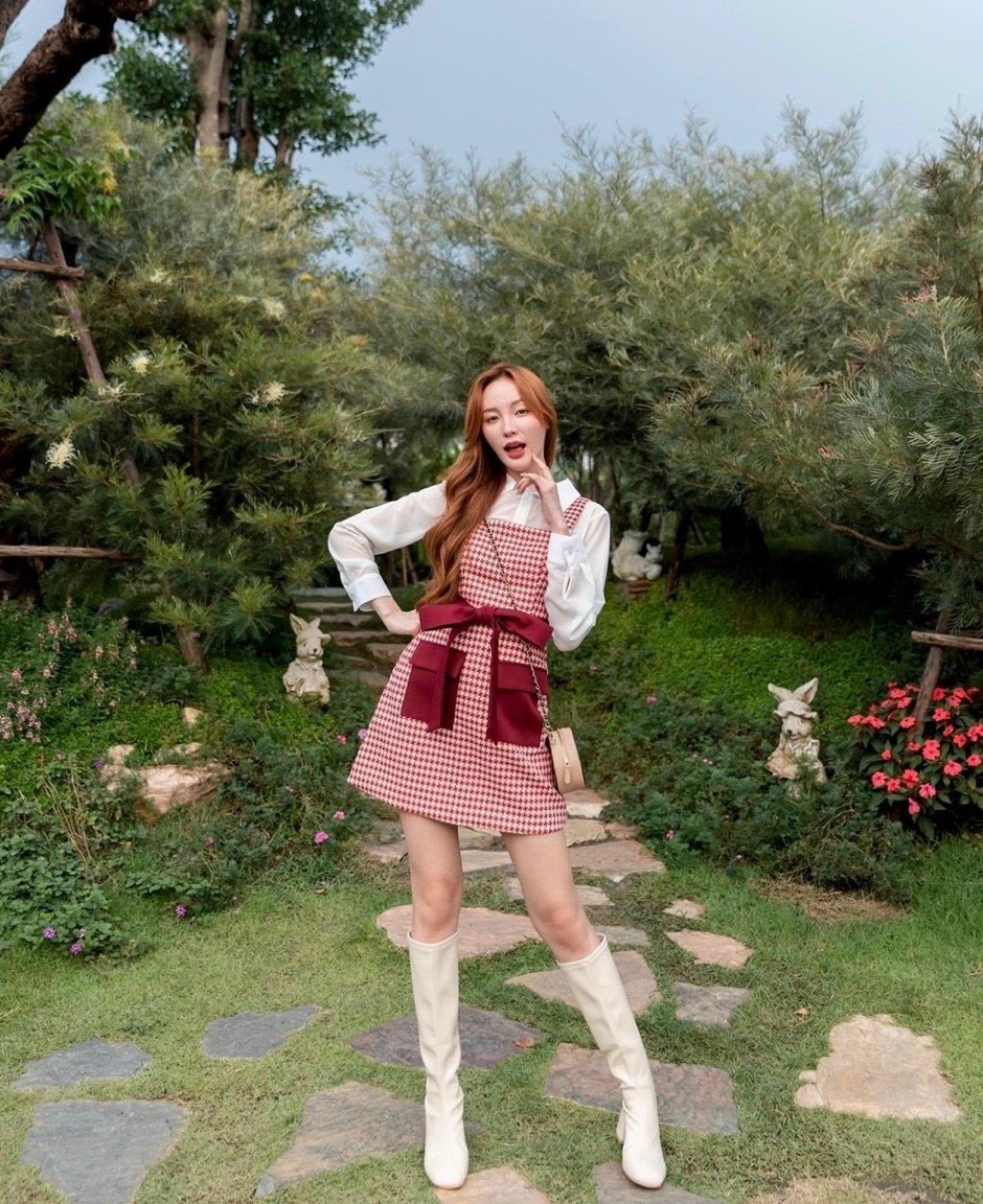 Thiết kế váy yếm chất tweed cao cấp, kết hợp áo sơ mi trắng dáng cropop cực sang chảnh cho mùa lễ sắp đến.