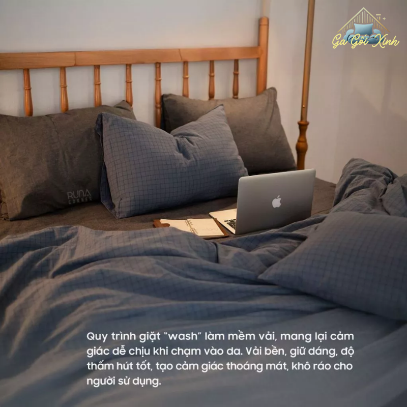 Ưu điểm nổi bật: Hút ẩm, thoáng mát, dễ chịu khi ngủ – đặc biệt khi dùng điều hòa. Giặt máy thoải mái, không cần ủi phức tạp. Màu sắc trang nhã, dễ phối nội thất.