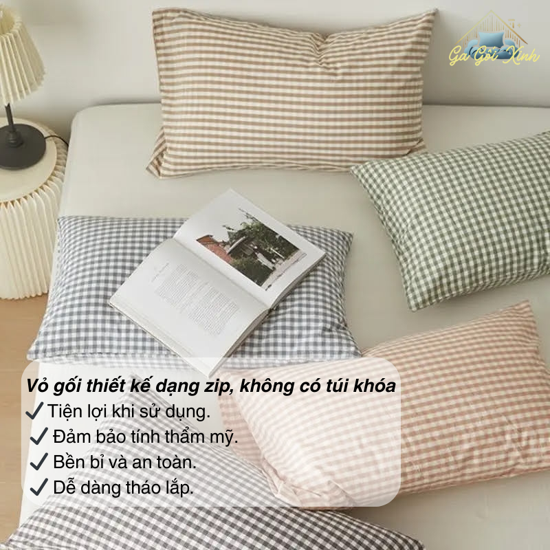 Vỏ Gối Nằm Caro Cotton Gagoixinh – Size 50x70cm / 45x65cm