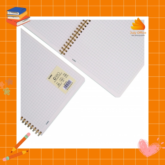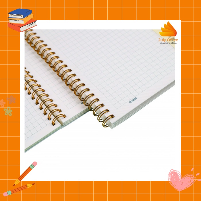 🍀Vở lò xo kép Klong B5 caro 120 trang bìa trong suốt