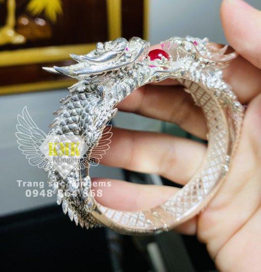 Vòng tay bạc Đầu Rồng 3D bản 15mm cực kỳ sắc nét và thần thái, thiết kế đẹp hơn vòng tay rồng Phú Lê. Mẫu vòng độc quyền của đơn vị vàng Mingems.