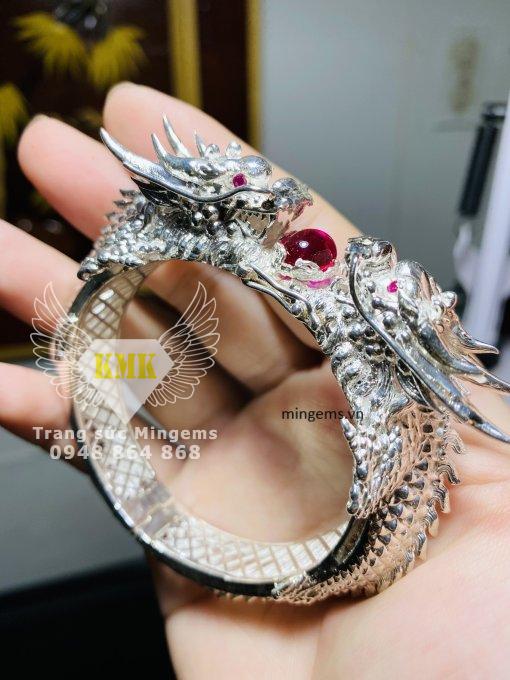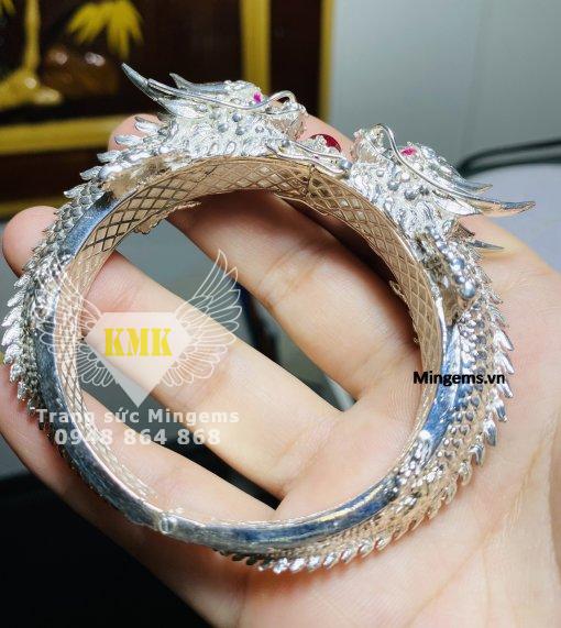 Vòng tay đầu rồng bạc phiên bản Mingems nét hơn và mảnh hơn của Phú Lê ngày càng được ưa chuộng trên thị trường hiện nay, bởi độ năng của bạc, độ nét, độ gọn gàng và không quá to, hầm hố. Mẫu của Mingems dành cho tất cả các khách hàng có niềm đam mê phong thủy về hình tượng con rồng, phiên bản 15mm phù hợp ngay cả những người làm kinh doanh và văn phòng.