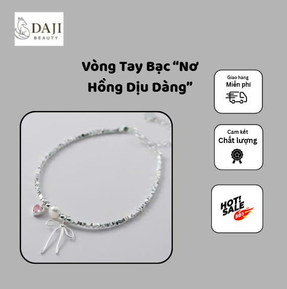 Vòng tay “Nơ Hồng Dịu Dàng” mang đến vẻ đẹp nhẹ nhàng, tinh tế nhưng vẫn toát lên sức hút riêng biệt. Thiết kế thanh mảnh kết hợp giữa hạt bạc tròn lấp lánh và chiếc nơ nhỏ xinh tượng trưng cho sự duyên dáng, đáng yêu của người con gái. Một điểm nhấn nổi bật là hạt charm hồng trong suốt, gợi cảm giác ngọt ngào và tinh khôi.