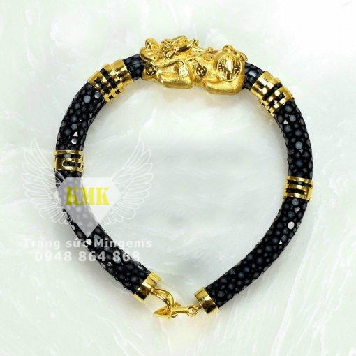 Hướng dẫn mua và đặt vòng tay da cá đuối bọc tỳ hưu vàng 18k.