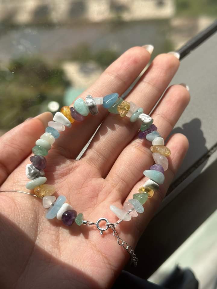 Vòng tay đá handmade thạch anh màu cầu vồng