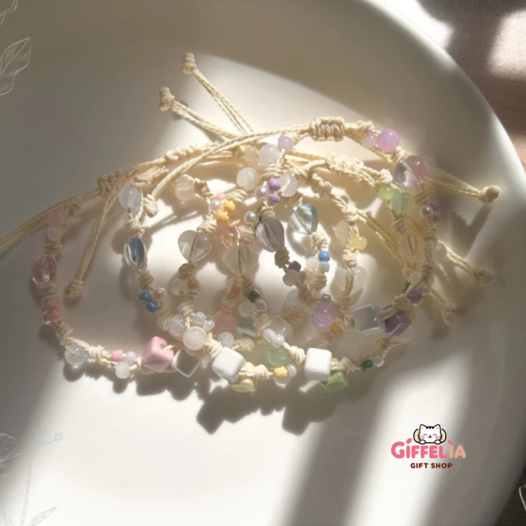 Một thiết kế handmade cực kỳ nhẹ nhàng và tinh tế, vòng tay dây rút kết hợp cùng 2 charm gốm vuông xinh xắn, phối hạt thủy tinh và resin trong tông màu pastel dịu nhẹ. Mỗi chiếc vòng như mang theo nắng nhẹ cuối chiều, thích hợp với những bạn yêu phong cách nhẹ nhàng, cổ điển hoặc vintage.
