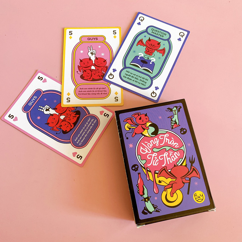 Nếu bạn đã nghe về King’s Cup thì chắc hẳn sẽ biết game này vui thế nào. Vòng Tròn Tử Thần là phiên bản Việt hoá trò chơi cực kỳ kịch tính này. Nhớ khấn trước khi bốc bài vì với mỗi lá, bạn hoặc người khác phải nốc đấy 😈 Để chơi game này chỉ cần để một chiếc ly rượu ở giữa, lần lượt bốc theo vòng và làm theo luật trên lá bài: Lá A: Tất cả cùng nốc Lá 2: Chọn ra một người phải nốc Lá 3: Nốc một mình mà vẫn vui 👌🏻 Lá 4: Nhanh tay chạm xuống sàn/bàn, đứa nào chậm nhất phải nốc Lá 5: Con trai phải nốc Lá 6: Con gái phải nốc Lá 7: Đếm 1 2 3 tất cả cùng giơ tay lên trời, chậm nhất nốc Lá 8: Bóp *ái đồng đội, chọn 1 người cùng nốc đến hết cuộc chơi Lá 9: Chơi nối từ, ai thua thì nốc. Tips: Đẹp đẽ nếu muốn đứa kế bên nốc Lá 10: Chọn 1 chủ đề bất kì, ai thua uống. Ví dụ: kể tên các hãng xe hơi, các thứ trong tuần, tháng trong năm, các con vật có 2 chân. Lá J: Đặt 1 luật, ai vi phạm phải nốc. Tips: Cấm thở 🤭 Lá Q: Người bốc lá bài hỏi một câu bất cứ lúc nào, ai nhanh miệng trả lời thì phải nốc Lá K: 3 người đầu tiên bốc đc con K thì đổ thêm rượu hoặc bất cứ thứ gì vào ly ở giữa, ai bốc phải con K cuối thì nốc 🔥