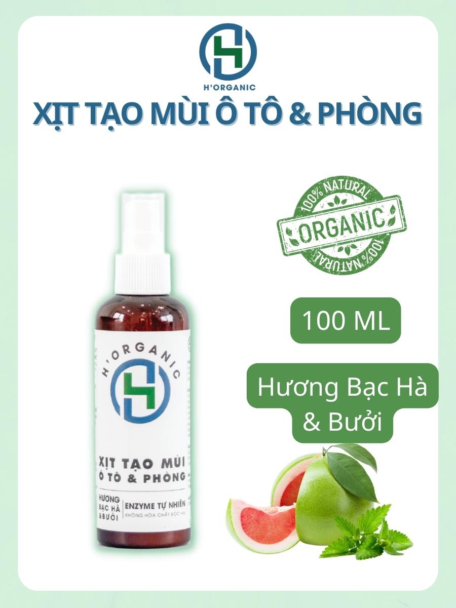Xịt tạo mùi ô tô - phòng hữu cơ Horganic (Hương bạc hà & bưởi) được sản xuất từ trái cây tự nhiên, không chứa cồn hay hóa chất. Đạt tiêu chuẩn TCVN ISO 9001 2015 và các tiêu chuẩn về nước sạch