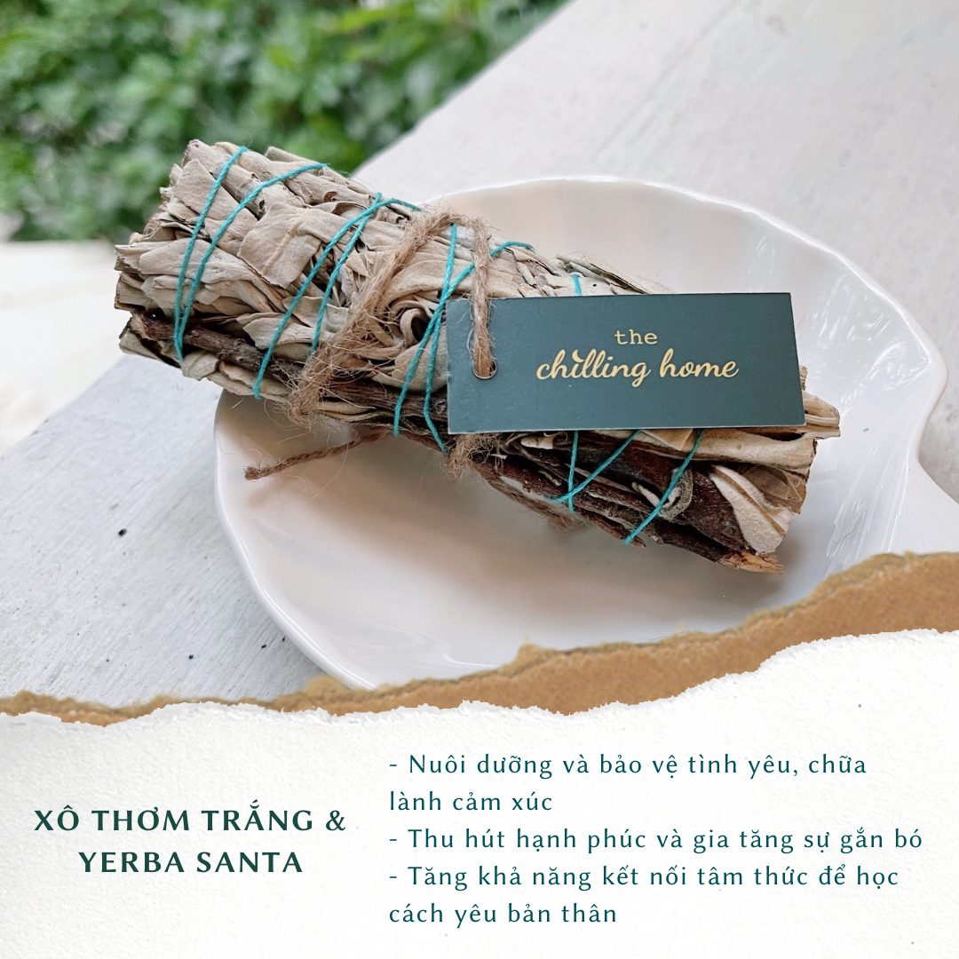 Xô thơm Yerba Santa là sự kết hợp giữa Yerba Santa (Thánh Thảo Dược) và White Sage (xô thơm trắng) nên có sức mạnh thanh lọc đặc biệt, nâng cao rung động, xua tan tiêu cực và thu hút hạnh phúc mạnh mẽ.