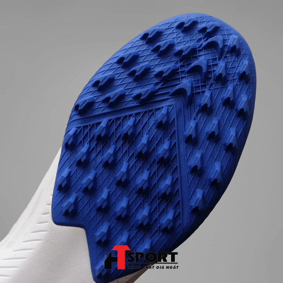 Được thiết kế với màu chủ đạo là trắng xanh với logo ba sọc làm nổi bật hình ảnh người chơi với đôi chân tốc độ và đế giày có đinh giúp bạn luôn đứng vững trước những thử thách trên sân.