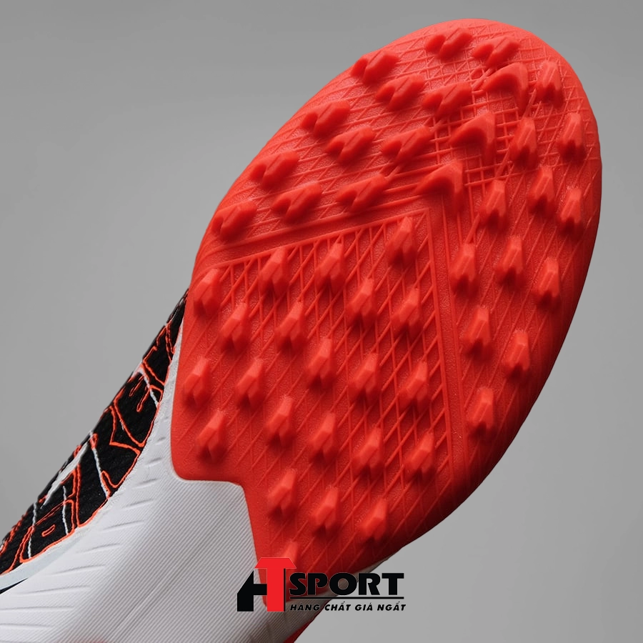 Được thiết kế với màu chủ đạo là trắng đỏ kết hợp với các họa tiết khác trên đôi giày làm nổi bật hình ảnh người chơi với đôi chân tốc độ và đế giày có đinh nhân tạo TF giúp bạn luôn đứng vững trước những thử thách trên sân.