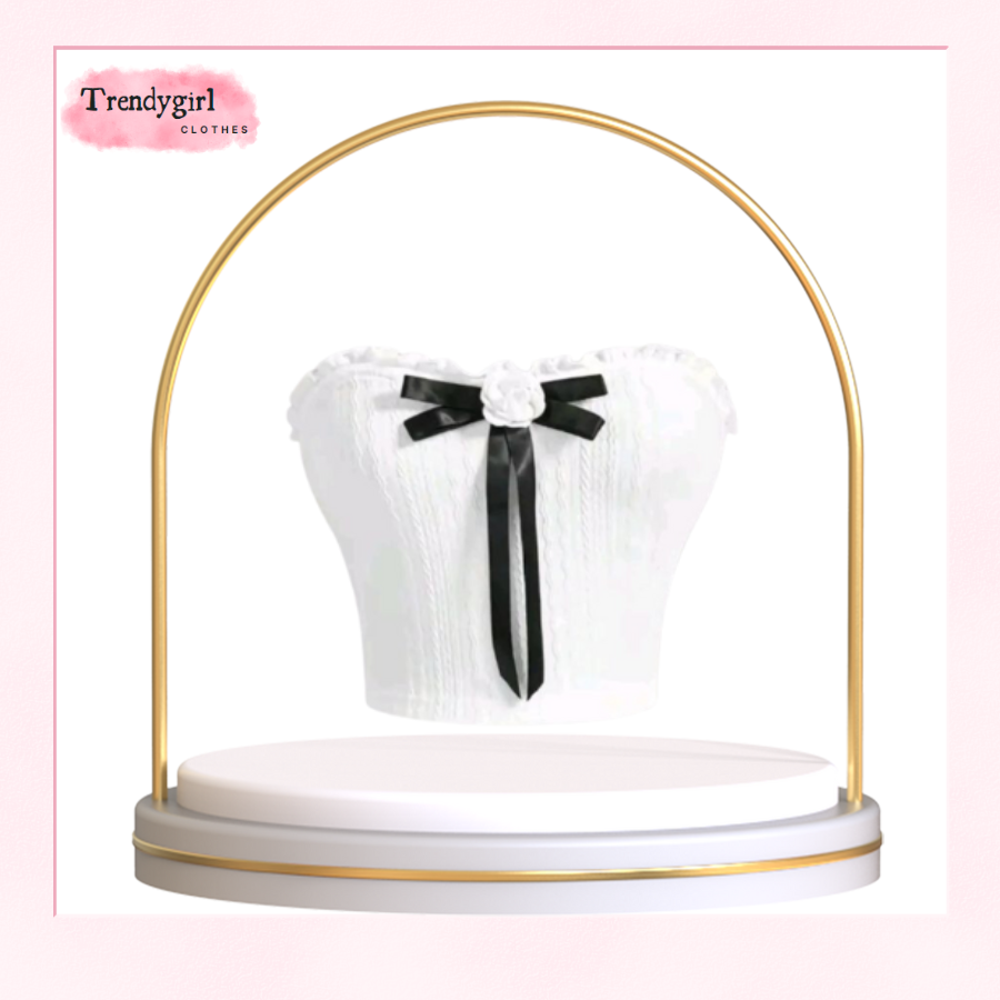 Áo croptop quây ngực đính nơ tiểu thư Hàn Quốc