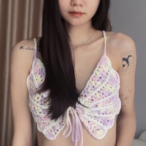 Áo Len Croptop Hai Dây Sò Bướm Sexy