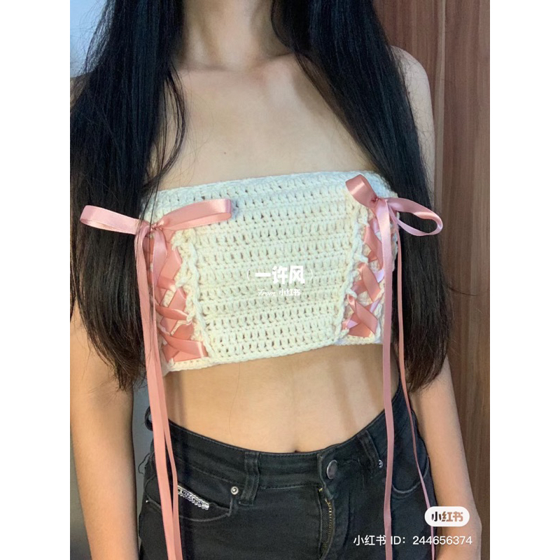 Áo Len Croptop Thắt Nơ Ruy Băng Bánh Bèo