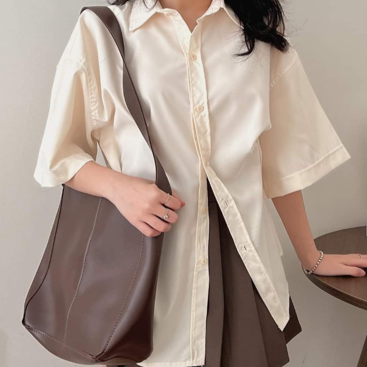 Sản phẩm: Áo Sơ Mi Trơn Lụa Tay Ngắn | Unnie Sơ Mi