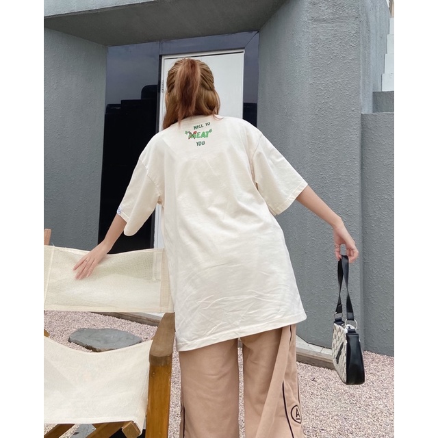 Áo thun Unisex Nice To Meat You Chất liệu: 100% cotton Hình in lụa không bong tróc Size : S < 45kg 1m55 Size : M < 55kg 1m65 Size : L < 85kg 1m80