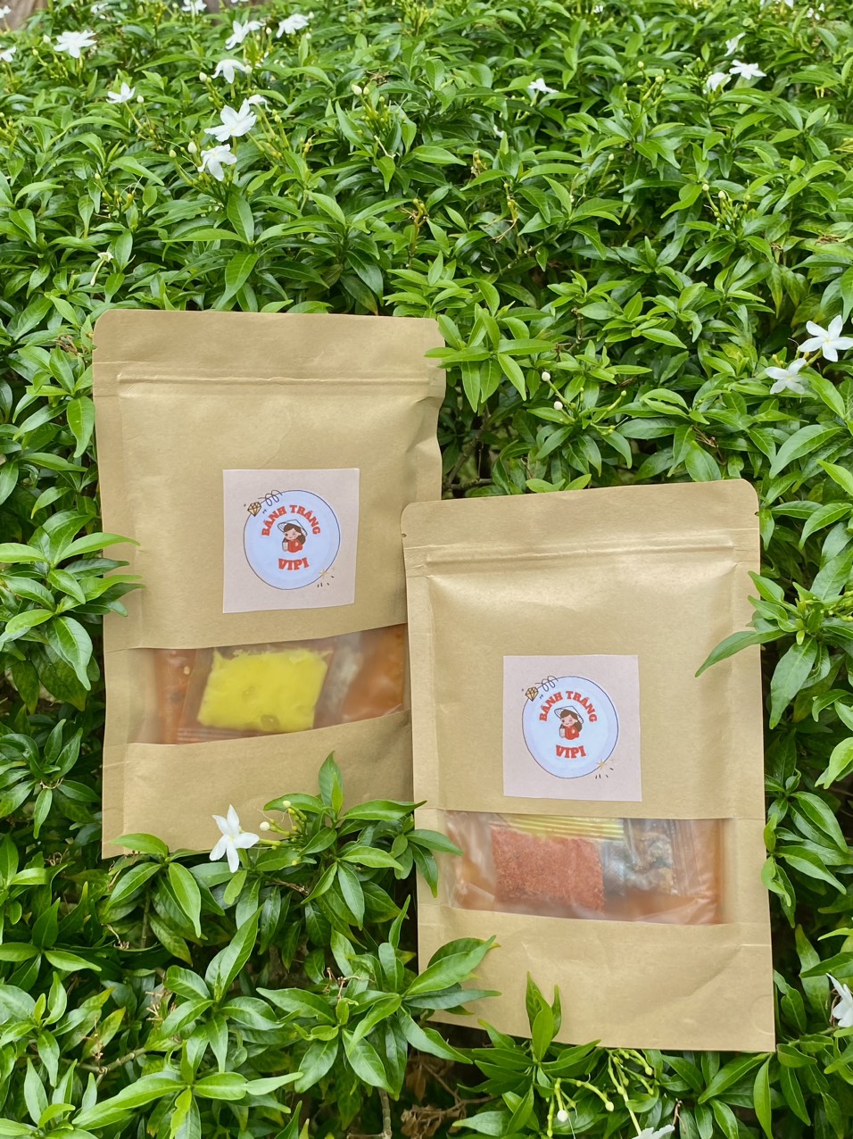 -Thành phần: Bánh tráng dẻo, bơ, hành phi, con ruốc, muối tôm.