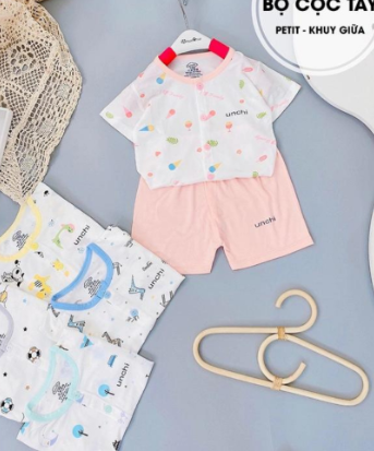 - Bộ Quần Áo Trẻ Em Ngắn Tay Có Cúc Giữa Chất Vải Cotton co dãn tốt, dễ thấm hút mồ hôi được may thành đồ bộ cực kì thoải mái cho bé