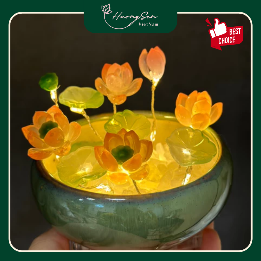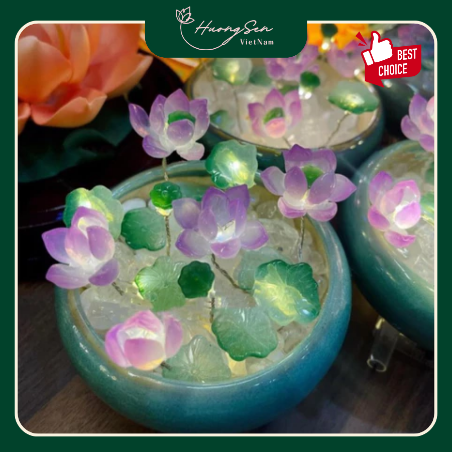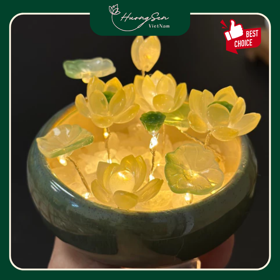 Chậu đèn Hoa Sen thiết kế dễ thương trang trí góc nhỏ trong phòng ngủ vô cùng xinh xắn. Chậu đèn Pha Lê được đựng trong chậu nhỏ xinh, phù hợp đặt trên bàn làm việc, kệ sách, hay góc phòng. Với màu xanh mát mắt và hình dáng độc đáo, chậu hoa đèn không chỉ mang tính thẩm mỹ cao mà còn được biết đến như biểu tượng của sự bền bỉ và phát triển.