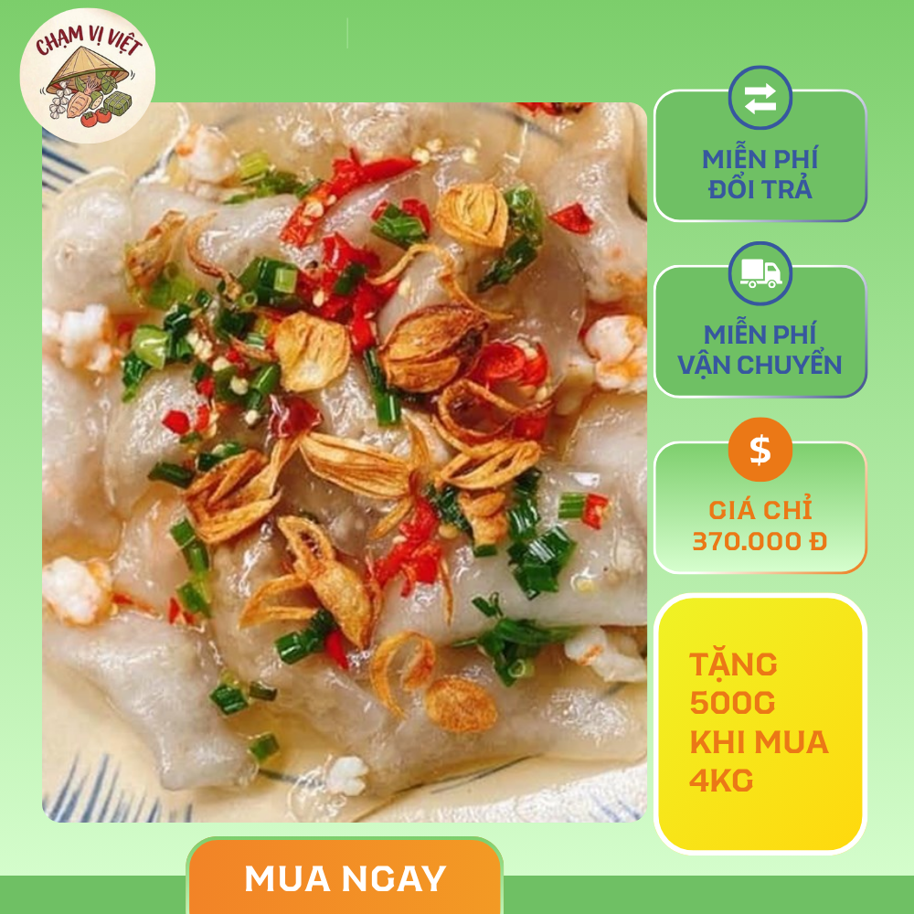 Thành phần: Bột năng, tôm tươi, thịt heo, hành, tỏi, tiêu, gia vị truyền thống.