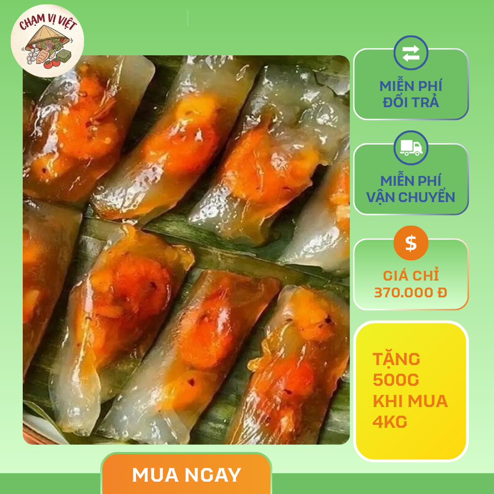 Đặc điểm: Vỏ bánh trong dai tự nhiên, nhân tôm thịt đậm vị, màu sắc hấp dẫn, không chất bảo quản.