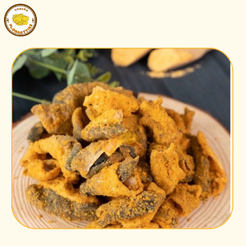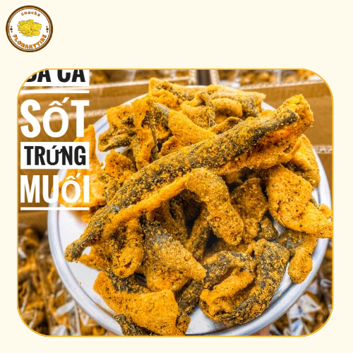 Cho vào miệng cắn miếng da cá thật giòn và vị lòng đỏ trứng mặn đậm đà, bùi béo cực kì hấp dẫn.