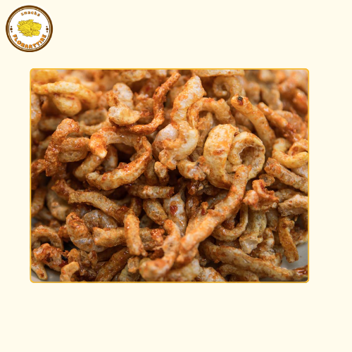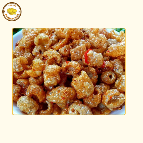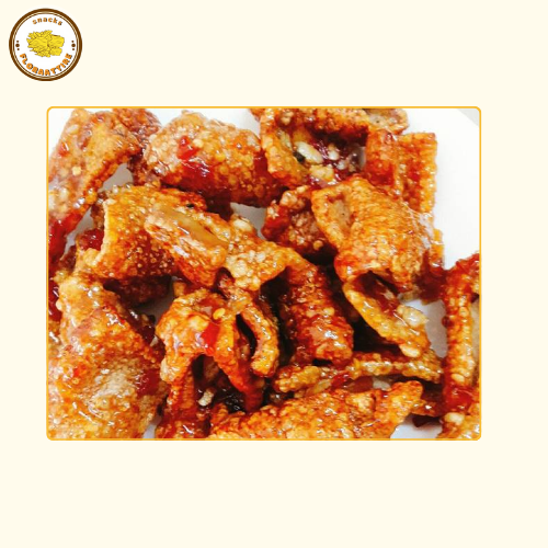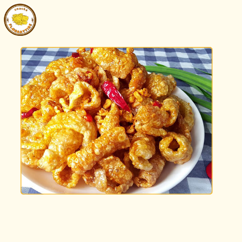 DA HEO GIÒN TẨM GIA VỊ – NGON LÀ MÊ! Da heo được phơi khô, chiên giòn rụm và tẩm gia vị muối, ớt, tỏi để tạo nên một hương vị đậm đà, hấp dẫn.