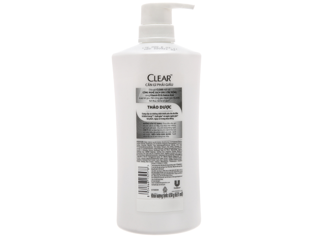 Dầu gội Clear thương hiệu Hà Lan, là dầu gội làm sạch gàu số 1 Việt Nam. Dầu gội sạch gàu Clear thảo dược 631ml với sức mạnh 9 loại thảo dược quý, giúp làm sạch sâu & nuôi dưỡng da đầu, ngăn gàu trở lại. Hương thơm tự nhiên, ấm áp, mang đến cảm giác thư giãn giữa cây cỏ, lá hoa