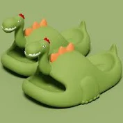 Đôi dép màu xanh lá hình cá sấu đáng yêu có mắt lồi và răng trắng.