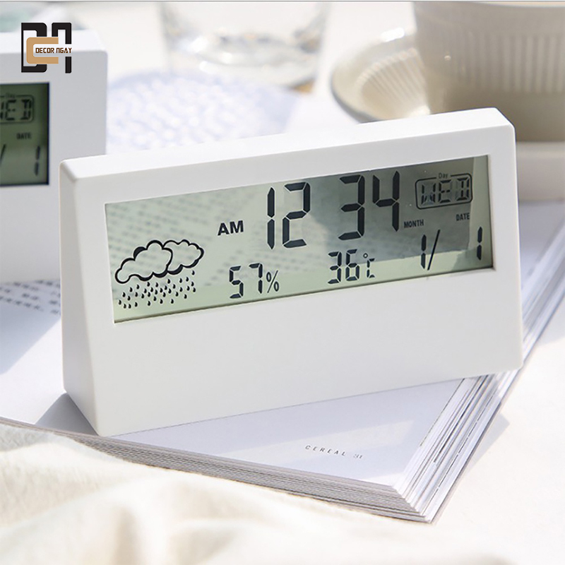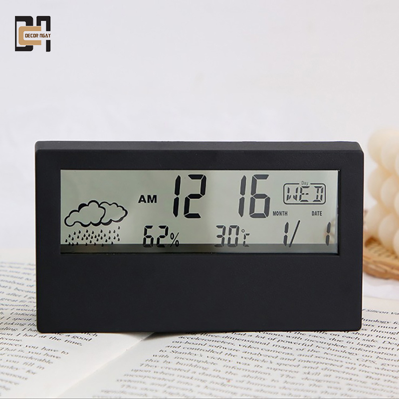 Đồng Hồ Để Bàn Báo Thức LCD Hiển Thị Lịch, Nhiệt Độ Đã Bao Gồm Pin Và HDSD Tiếng Việt