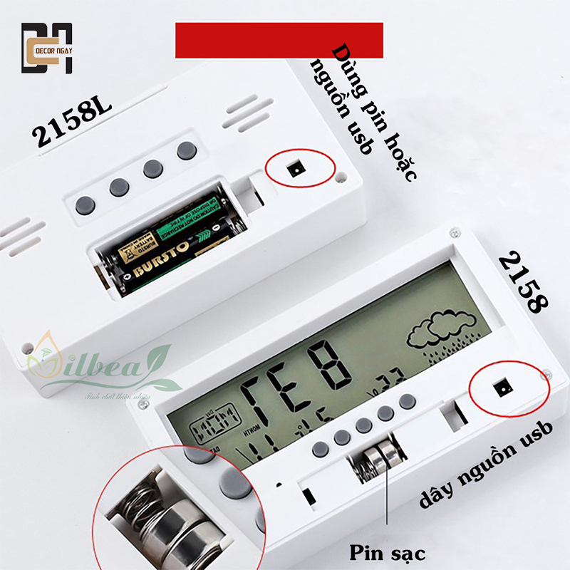 - 2158L: màn hình LCD không xuyên thấu, sử dụng 2 viên pin AAA hoặc dây nguồn 5V/1A, có trang bị đèn LED
