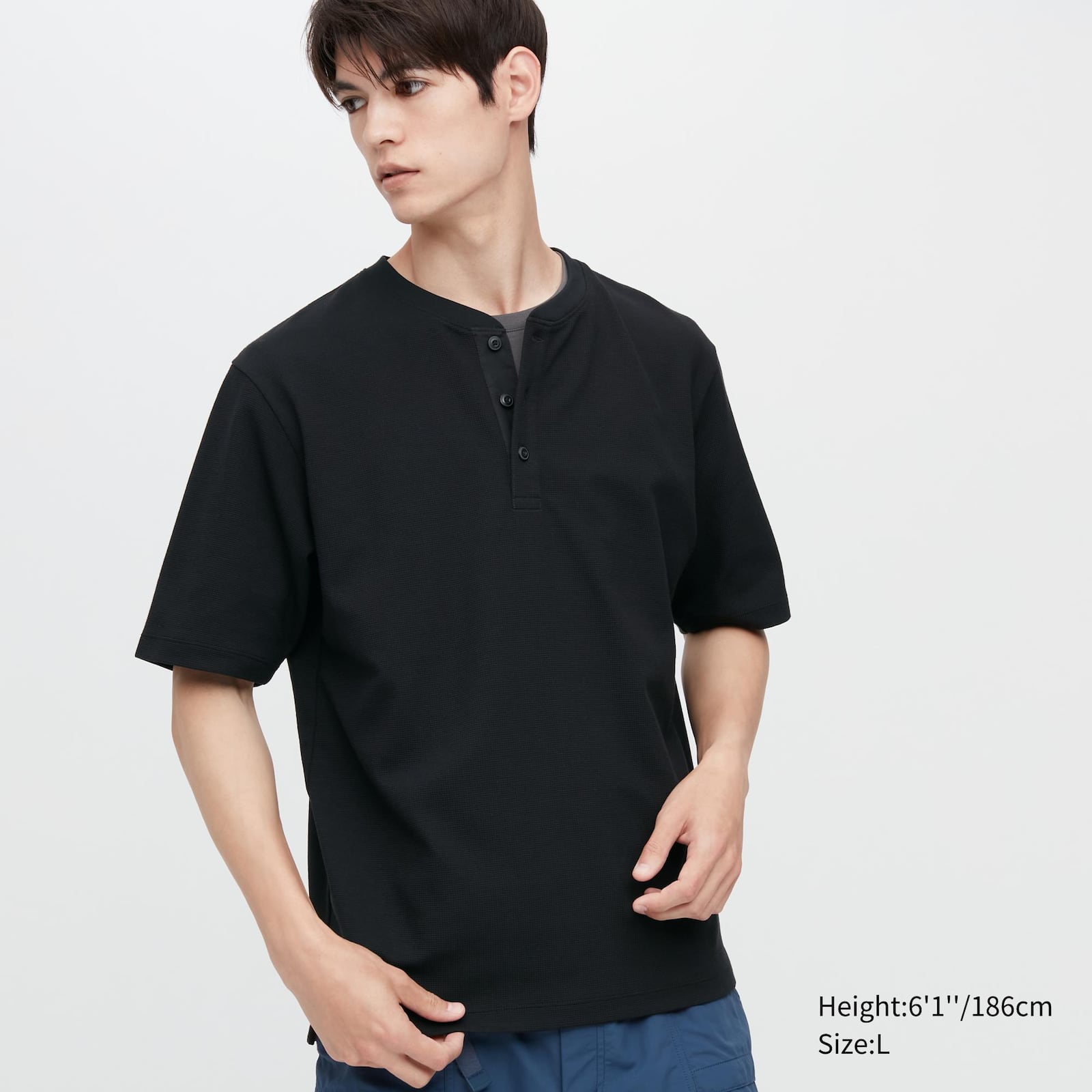 Soft fabric and a comfy, loose-fitting silhouette. Henley neck placket adds a style accent.