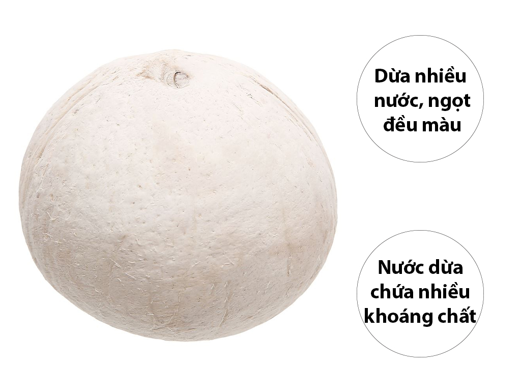 Dừa xiêm gọt vỏ có trái to, nhiều nước. Nước dừa có vị ngọt thanh, đậm đà. Dừa là loại trái cây có tính mát, được rất nhiều người ưa chuộng và lựa chọn sử dụng. Dừa có cạnh thấp, mịn, màu đều là dừa nhiều nước.