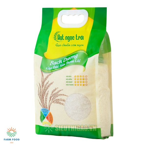 Gạo Hạt Ngọc Trời Bạch Dương là sự kết hợp tuyệt vời giữa giống lúa và vùng trồng duyên hải, tạo nên cơm có vị đậm đà của biển. Cơm có đặc điểm dẻo, mềm, mang mùi thơm đặc trưng, và vị ngọt tinh tế phù hợp với nhiều khẩu vị của người Việt Nam.