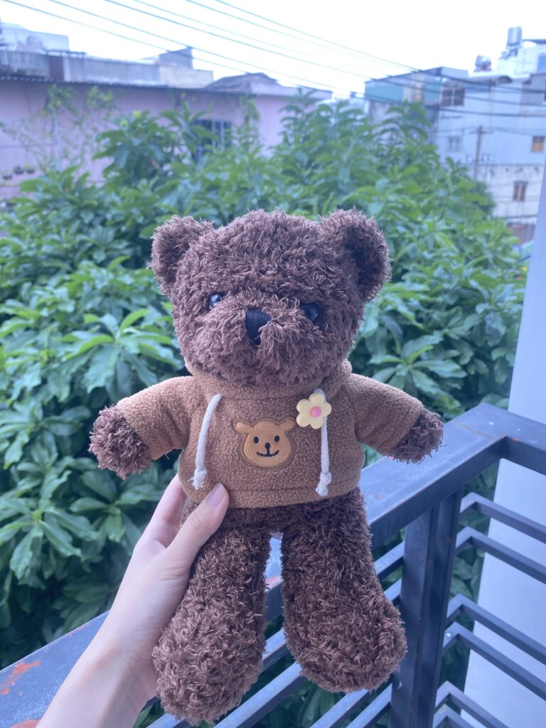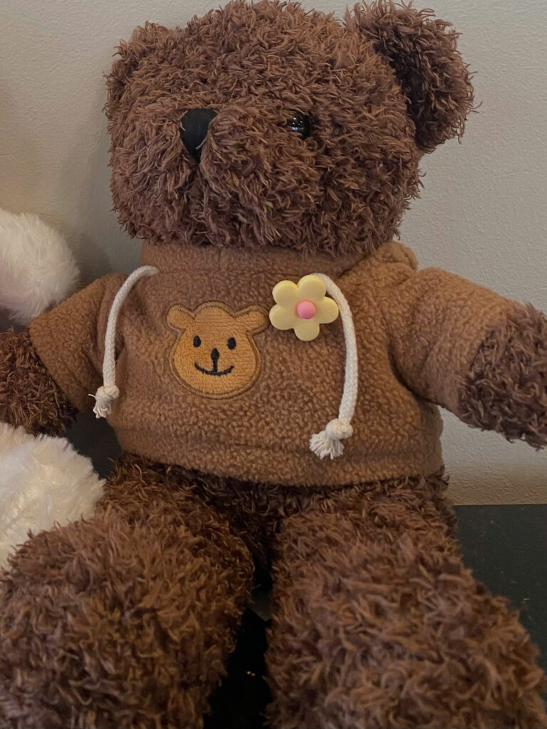 Gấu bông Teddy lông nâu phối áo hoodie màu nâu - Love Bear