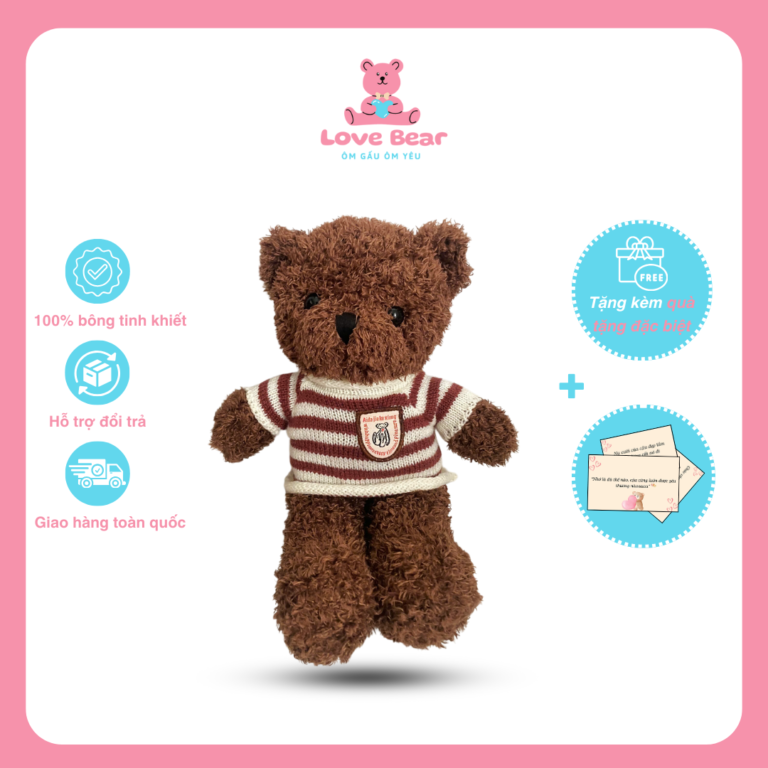 Gấu Teddy nâu phối áo len sọc siêu đáng yêu - Love Bear