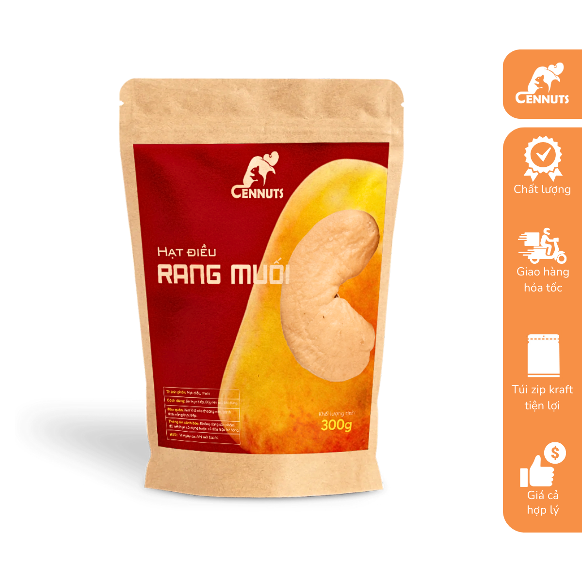 - Sản phẩm được đóng gói bằng túi zip kraft tiện lợi, dễ dàng mang đi và thân thiện với môi trường.