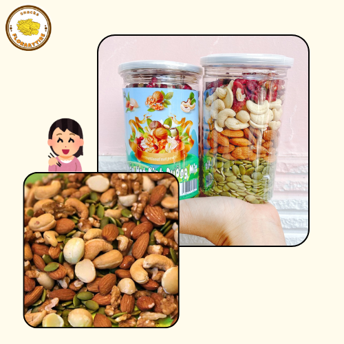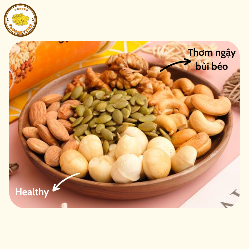 - Hạt mix dinh dưỡng gồm các loại hạt như hạnh nhân, hạt điều, hạt óc chó, hạt bí và hạt hướng dương, giàu vitamin, khoáng chất và chất xơ.