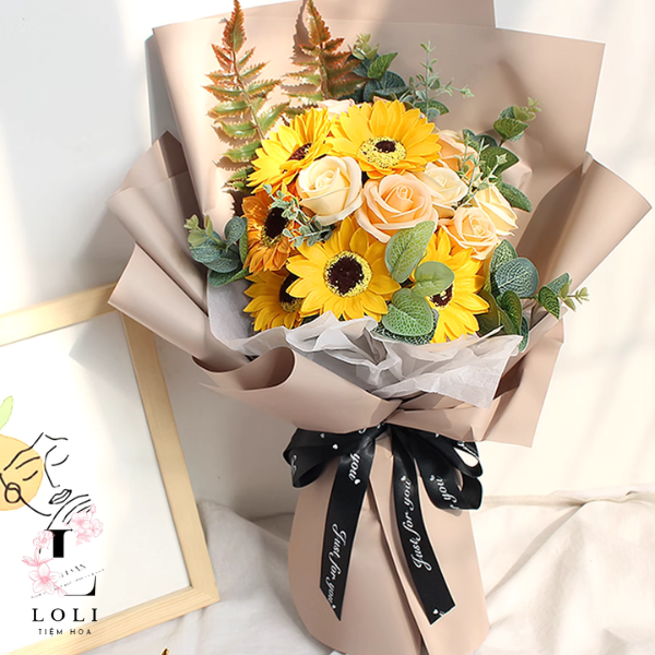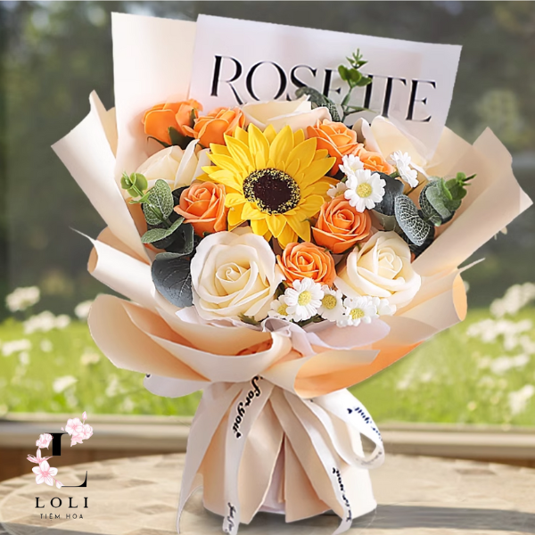 Hoa sáp 4 lớp với thiết kế theo phong Tiệm hoa Loli cách Hàn Quốc cùng giấy gói cứng cáp vô cùng an toàn khi vận chuyển, đảm bảo không bị nhàu nát